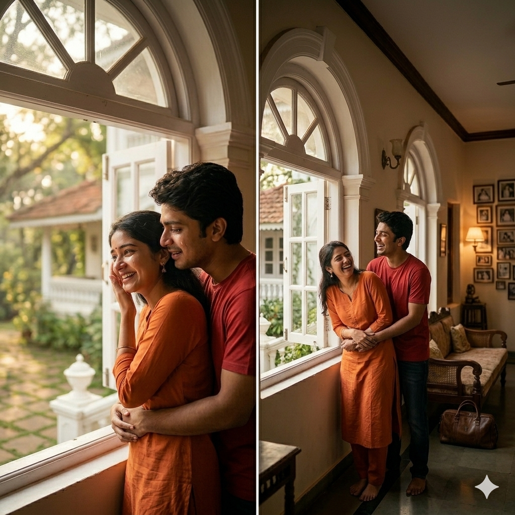 ಒಳಗೆ ಹೋದ ನಕುಲ್ ಮೀರಾಳಿಗಾಗಿ ಹುಡುಕಿದ.ಬಾಲ್ಯದ ನೆನಪುಗಳನ್ನು ನೆನೆದು ಭಾವುಕಳಾಗಿ ಕಿಟಕಿಯ ಕಡೆ ನೋಡುತ್ತಾ ನಿಂತಿದ್ದ ಮೀರಾಳನ್ನು ಹಿಂಬದಿಯಿಂದ ತಬ್ಬಿಡಿದು ಅವಳ ಭುಜದ ಮೇಲೆ ತನ್ನ ಗಲ್ಲವಿರಿ ಸಿದ.ಮೀರಾಳಿಗೆ ಖಾತ್ರಿಯಾಗಿ ಗೊತ್ತಿತ್ತು ಅದು ನಕುಲನೇ ಎಂದು.ನಕುಲನ ಹಿಡಿತದಿಂದ ಕೋಪಗೊಂಡ ಮೀರಾ ಅವನ ಕಡೆ ತಿರುಗಿ ಅವನನ್ನು ದೂರ ತಳ್ಳಿ “ಯಾರ್ ಸರ್ ನೀವು. ಹೇಳ್ದೆ ಕೇಳ್ದೆ ನನ್ನ ತಬ್ಕೊತಿದಿರಾ”ಎಂದಳು. ಅವಳ ಕಣ್ಣು ಕೋಪದಿಂದ ಕೆಂಪೇರಿದ್ದವು.