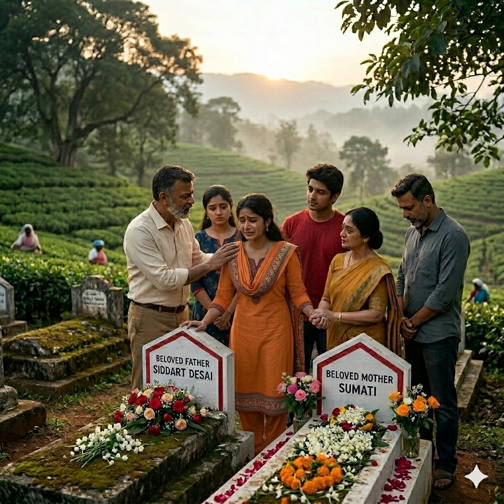 ಅಪ್ಪ ಅಮ್ಮನ ಸಮಾಧಿ ನೋಡಿ ಭಾವುಕಳಾದ ಮೀರಾಳನ್ನು ಪ್ರಕಾಶ್ ಸಂತೈಸಿದನು.ಸಮಾಧಿಗೆ ಹೂಮಾಲೆ ಹಾಕಿ ವಂದಿಸಿದಳು.ನಂತರ ಎಲ್ಲರೂ ಜೊತೆಯಾಗಿ ಎಸ್ಟೇಟ್ ಸುತ್ತಲೂ ಹೋದರು.ಸಂಜೆ ಸಮಯವಾದ್ದರಿಂದ ಎಸ್ಟೇಟ್ ನೋಡಲು ಇನ್ನೂ ಚೆನ್ನಾಗಿದೆ ಕಾಣುತ್ತಿತ್ತು.
