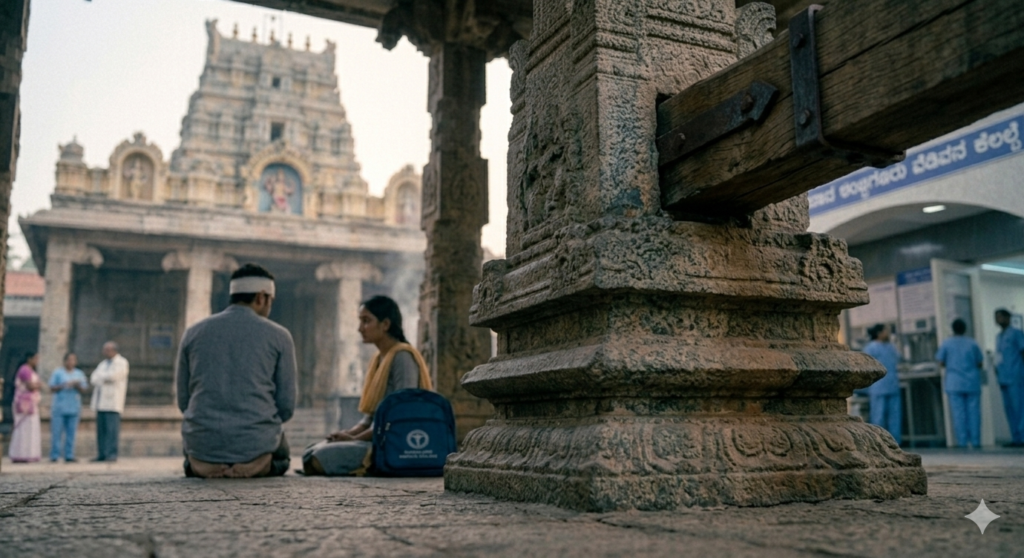 ಸಮಯ ಬೆಳಗ್ಗೆ 6 ಗಂಟೆಯಾದಾಗ ಅಲ್ಲಿಗೆ ಬಂದ ದೇವಸ್ಥಾನದ ಪೂಜಾರಿ”ಯಾರಪ್ಪ ನೀನು ಇಲ್ಲೇಕೆ ಮಲಗಿದ್ದೀಯಾ ಎದ್ದೇಳು ಭಕ್ತರು ಬರುವ ಹೊತ್ತಾಯಿತು”ಎಂದು ನಿದ್ದೆಯಿಂದ ಎಚ್ಚರಿಸಿದರು.
