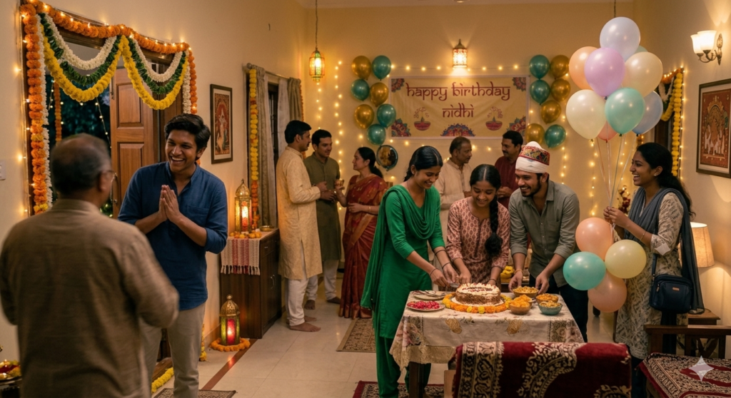 ನಿಧಿಗೆ ಬರ್ತ್ಡೇ ಸಂಭ್ರಮ.ಮಧ್ಯರಾತ್ರಿ ತುಳಸಿಯಿಂದ ಮೊದಲ ಹಾರೈಕೆ ಪಡೆದ ನಂತರ ಚಿರು, ತನ್ನ ಗೆಳೆಯ ಗೆಳತಿಯರ ಹಾರೈಕೆ ಪಡೆದಳು.